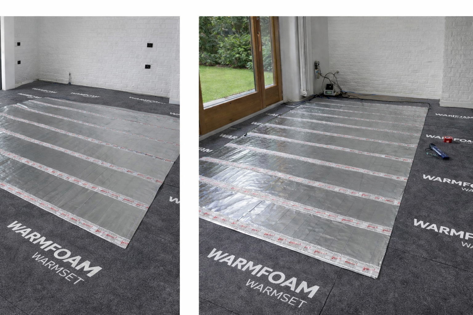 The Warmset Black Aluminium Heating Mat is an advanced electric underfloor heating system designed specifically for floating floor installations such as laminate, engineered wood, vinyl, carpet, and other dry-laid flooring systems. The heating element is integrated into a laminated aluminium foil structure, allowing heat to spread quickly and evenly across the floor surface for efficient and comfortable warmth.