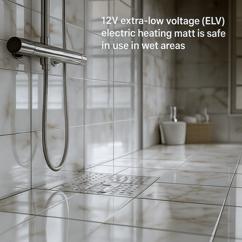 Because of its 12V extra-low voltage (ELV) system, the heating mat is suitable for installation under a shower tray or in other wet areas.